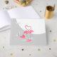 A pair of pink flamingos with necks curved to form a heart shape stand in the sea on a moonlit beach. A stylish, romantic design with a retro touch created in a pink, grey and white colour scheme with a colour-change background. A customisable design for you to personalise with your own text, images and ideas. An original digital art image.