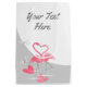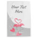A pair of pink flamingos with necks curved to form a heart shape stand in the sea on a moonlit beach. A stylish, romantic design with a retro touch created in a pink, grey and white colour scheme with a colour-change background. A customisable design for you to personalise with your own text, images and ideas. An original digital art image.