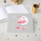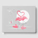 A pair of pink flamingos with necks curved to form a heart shape stand in the sea on a moonlit beach. A stylish, romantic design with a retro touch created in a pink, grey and white colour scheme with a colour-change background. A customisable design for you to personalise with your own text, images and ideas. An original digital art image.