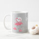 A pair of pink flamingos with necks curved to form a heart shape stand in the sea on a moonlit beach. A stylish, romantic design with a retro touch created in a pink, grey and white colour scheme with a colour-change background. A customisable design for you to personalise with your own text, images and ideas. An original digital art image.