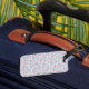 Travel in style with this vibrant luggage tag featuring a playful pattern of pink flamingos, vibrant pineapples, and lush tropical leaves set against a soothing light blue and white striped background. Perfect for adding a splash of fun and colour to your travel gear, this whimsical tag combines functionality and charm, making it an ideal accessory for any globetrotter.