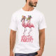 Flamingo Mardi Gras Party Goers unisex tee shirt, Two fabulous flamingos adorned with Mardi Gras beads, coloured Jester caps and masquerade masks wander the streets of New Orleans asking Where's the Party? Perfect casual Mardi Gras t-shirt design for dancing in the streets with joy.