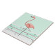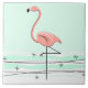 Mid-century inspired design with a retro touch featuring a pink flamingos standing in water against a pale aqua green background. A customisable design for you to personalise with your own text, images and ideas. An original digital art image created by Jess Perry at QuirkyChic Retro.