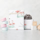 Mid-century inspired design with a retro touch featuring groups of pink flamingos standing in aqua water against a white background. A customisable design for you to personalise with your own text, images and ideas. An original digital art image created by Jess Perry at QuirkyChic Retro.
