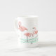 Mid-century inspired design with a retro touch featuring a pink flamingos standing in aqua water against a white background. A customisable design for you to personalise with your own text, images and ideas. An original digital art image created by Jess Perry at QuirkyChic Retro.