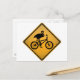 Warning sign showing silhouette of a flamingo riding a bicycle