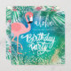 flamingo on tropical blue design invitation