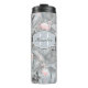 This thermal tumbler features a gorgeous pattern of flamingos surrounded by abundant tropical foliage and orchids in warm grey and blush pink. A label has been provided to hold your name and monogram or other text. Search ID868 to see other products with this tropical pattern.