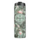 This thermal tumbler features a gorgeous pattern of flamingos surrounded by abundant tropical foliage and orchids in sage green and blush pink. A label has been provided to hold your name and monogram or other text. Search ID868 to see other products with this cool, tropical pattern.