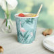 This paper cup features a gorgeous pattern of flamingos surrounded by abundant tropical foliage and orchids in soft blush pink and teal. Search ID868 to see other products with this cheerful, summery pattern.