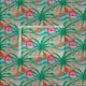Aqua blue waves of the ocean surround the Pink Flamingo under the green Palm Trees on the sandy beach in this durable Burlap natural cloth fabric image. This tropical Palm Tree pattern is a very colourful summer print and has a chunky faux texture.