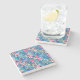 The coasters are gorgeous, a quality feel and heavy weight. They look like a precious archeological find. A rustic stone juxtaposed with a modern floral black and white print. I like the way the print goes slightly imperfect on the cut stone edges giving them a kind-of natural beauty.