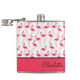 The flask itself is fine. It’s a cheap flask, obviously bought in bulk, however am prepared to overlook that. Given that it is a personalized item, I would have liked to have seen gift boxing instead of the generic packaging. Terrible printing, and/or quality. It’s a cheap, tacky vinyl. It is not cut straight and is also applied in a way that it is overhanging the bottom, causing the glue to catch on items and it will eventually roll and tear, damaging the wrap.