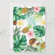 Pretty watercolor flamingo pineapple invitation with watercolor palms and plumeria flowers