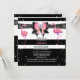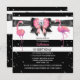A single faux satin black and pink bow edged with a golden stripe has a diamond inlay and is set against a white and black striped background edged with faux silver glitter sparkles and the illustration of two beautiful pink flamingo birds. This chic and stylish design is ideal for a bridal shower; birthday party; a special anniversary or even a business event. Personalise the wording to make sure it suits your special celebration.