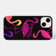 Flamingo pink glitter sparkles Personalise black iPhone Case