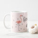 Mid-century inspired design with a retro touch featuring a pink flamingo and stars on a pale pink background. A customisable design for you to personalise with your own text, images and ideas. An original digital art image created by Jess Perry at QuirkyChic Retro.