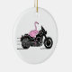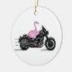 Flamingo Riding A Motorcycle Ceramic Ornament