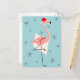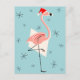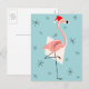 Flamingo Santa Blue portrait Holiday Postcard