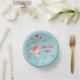 Flamingo Santa Blue Text Paper Plate