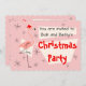 Flamingo Santa Pink scalloped horizontal Invitation