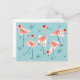 A lively, quirky Christmas design with retro touch featuring pink flamingos wearing Santa hats, cream geometric shapes, and stars on a blue (colour change) background. A customisable design for you to personalise with your own text, images and ideas. An original digital art image created by QuirkyChic.