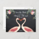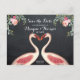 A lovely quirky flamingo Save the date postcard with chalkboard effect background. Customise front and back with your own details. A professional and unique design to wow your guests with. Matching wedding stationery also available.