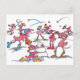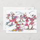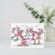illustrated Flamingo Snowball Fight Postcard