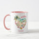 Girly coffee mug with tropical beachy heart and flamingos in pink and soft summer colours with retro vibes. Easily personalise the text. - Kate Eden Art