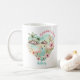 Coffee mug with tropical beachy heart and flamingos in soft summer colours with retro vibes. Easily personalise the text. - Kate Eden Art