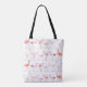 All six species of flamingo strutting their stuff on a just-the-right-amount-of-tacky tote bag! They're all here: American, Andean, Chilean, James's, Greater and Lesser.