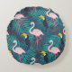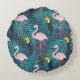 Flamingo, toucan: tropical leaf pattern round cushion