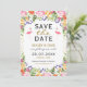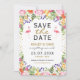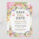 Beautiful tropical wedding save the date invitation featuring watercolor illustration of two pink flamingos, vibrant flowers and faux gold confetti. This customizable invitation is perfect for summer / tropical / Hawaiian / luau themed wedding celebrations!
