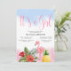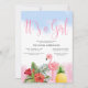 Design features cute flamingo , hibiscus flowers sweet pineapple at the bottom with pink ( down) and blue (up) splash . Many different sizes of invitation are available . Easy customisation process start with clicking button 'PERSONALIZE' that gives you the invitation automatically for your purpose.
