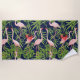 Flamingo Tropical Plants on Deep Blue Background Beach Towel