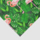 Watercolor pattern design with flamingo birds and tropical leaves.