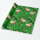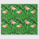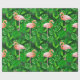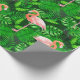 Watercolor pattern design with flamingo birds and tropical leaves.