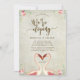 A tropical flamingo design invitation with "we're tying the knot/we're eloping" and a co-ordinating reverse side. Easy to edit or delete the available text fields to personalise the information with your own details for a professional and custom finish. Matching items are available in this tropical collection. Please visit my shop to see the full range, including rsvps if required and favor stickers, name cards etc.