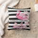 Flamingo Vibes Only Black & White Stripes Flamingo Cushion