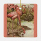 This is one fantastic old postcard illustration of graceful flamingos repurposed on an ornament.