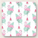 Tropical trendy pattern with pink flamingos, watermelon and mint green palm leaves on a white background. | © and ® Bigstock® - All Rights Reserved.