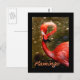 A flamingo with his head curved down standing in water. Text in pink that says "Flamingo" is in the lower left corner. Great design for anyone who loves flamingoes!
