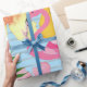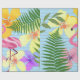 Beautiful, pink flamingo in combination with luau, colourful, watercolor, tropical flowers.