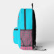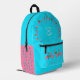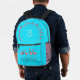 Fun girls backpack in bright aqua blue.  Pink flamingoes decorate the back and pocket area.  Add her first initial monogram to the back.  Tiny blue starfish along the sides match the starfish at the feet of the flamingos.