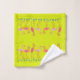 Flamingos towel set for the tropical bathroom. Pink flamingos standing among tiny blue starfish / sea stars make pretty borders on facecloth, hand towel and bath towel. Each item can be purchased separately or make a set. The border is printed at each end of the towels. The background is bright chartreuse and can be changed in the "customise further" section.