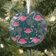 Flamingos Flowers: Dark Graphic Seamless. Glass Tree Decoration