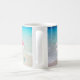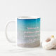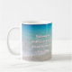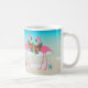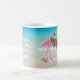 Two flamingos by the sea coffee mug. "Welcome to [names here] home by the sea" and date established - is the sample text on this beach scene mug. Pink flamingos, dressed in wreaths, and standing among starfish, face each other in this design. Bold, blue script text can be personalised with any message, names, dates, etc. that you choose.