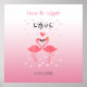 Cute pink flamingos with heart and crown on pink and white gradient background and dots