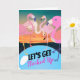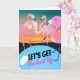 Let’s Get Flocked Up, paper invitation greeting card with flamingos around a water hole with a sunset sky. Customise text on the cover and inside the card with your party event information. Art. Image, and verse copyright © Shoaff Ballanger Studios, 2022.