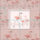 Mid-century inspired design with a retro touch featuring pink flamingos and stars on a pale pink background. A customisable design for you to personalise with your own text, images and ideas. An original digital art image created by Jess Perry at QuirkyChic Retro.
